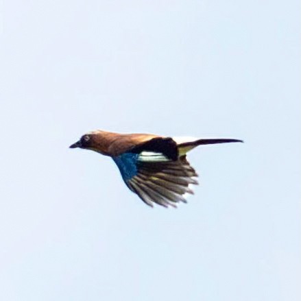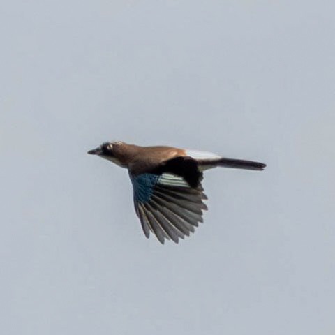 探鳥を初めてすぐに、カケスの群れが飛翔!