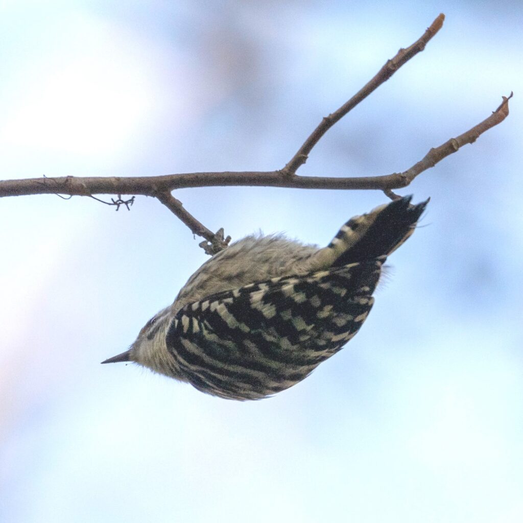 お顔が見えないけど、コゲラちゃん