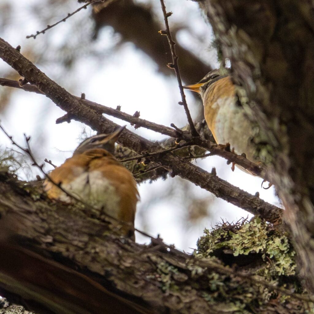 〈見た鳥〉ツミ、ヒドリガモ、マミチャジナイ、ツグミ、ゴジュウカラ、ムギマキ、コゲラ、シジュウカラ、キバシリ、コガモ(カルガモ)