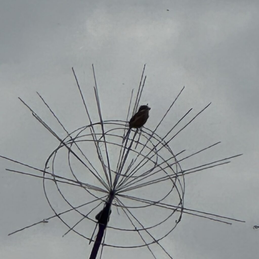 そしてモズ子ちゃんが塔の上に止まっていました。