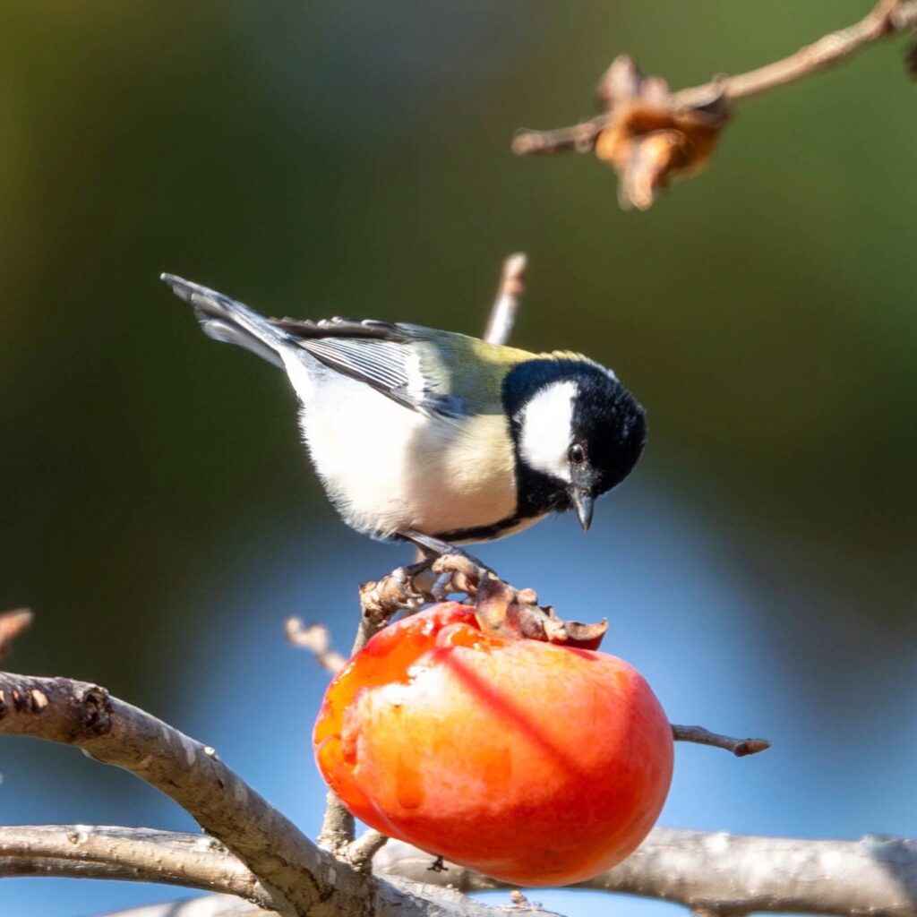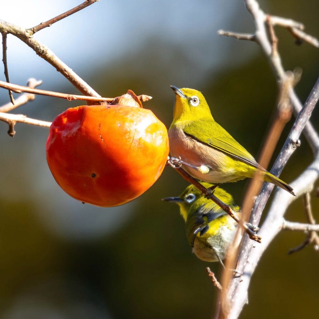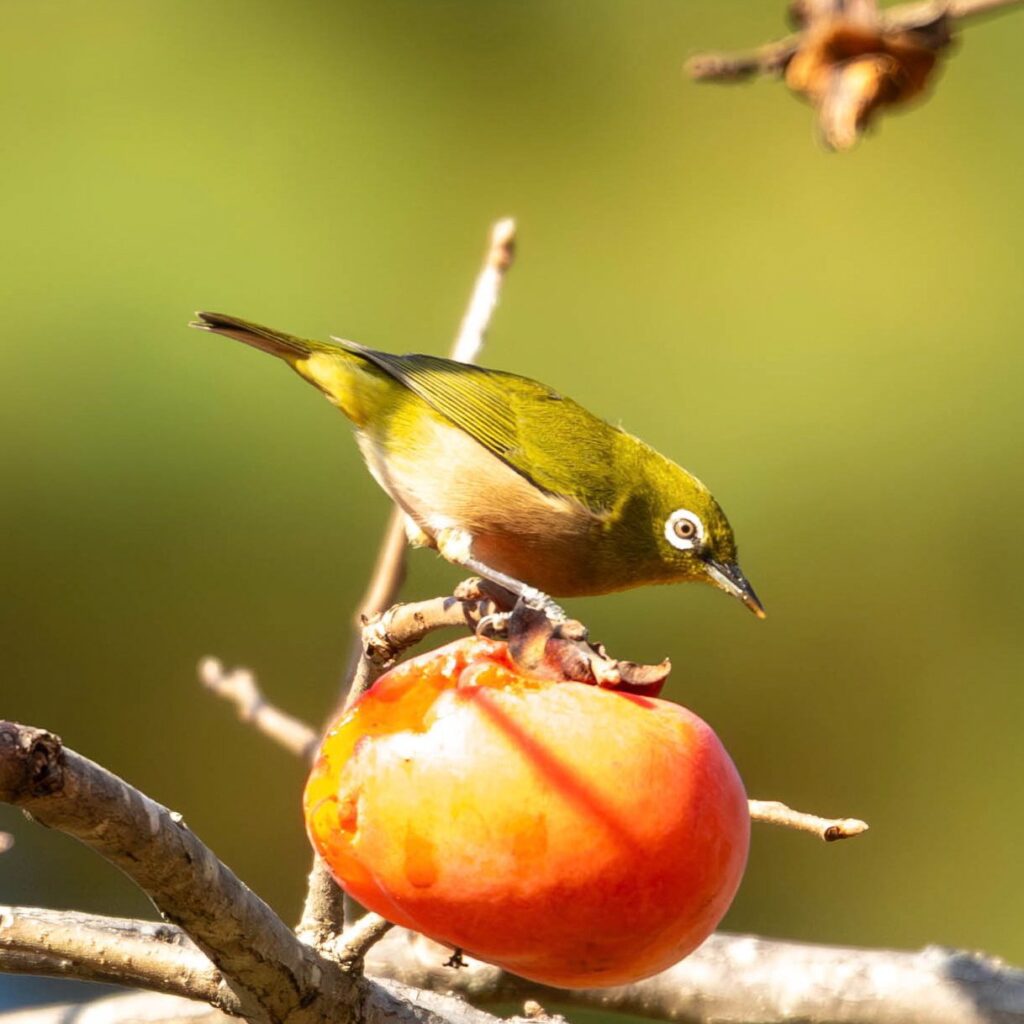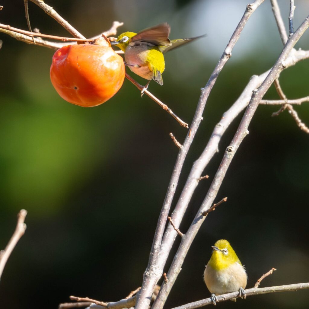 ドーナツ広場と反対側のピクニック広場の柿の木にもカラ隊が次々に登場!まずはメジロちゃん