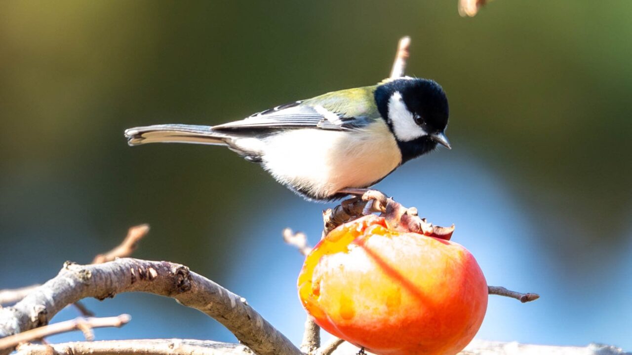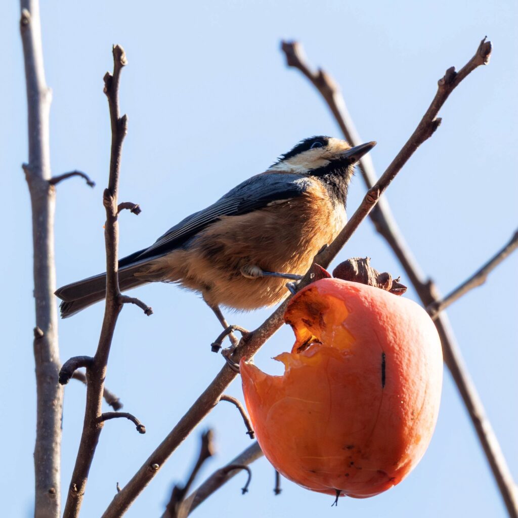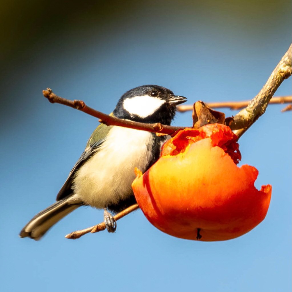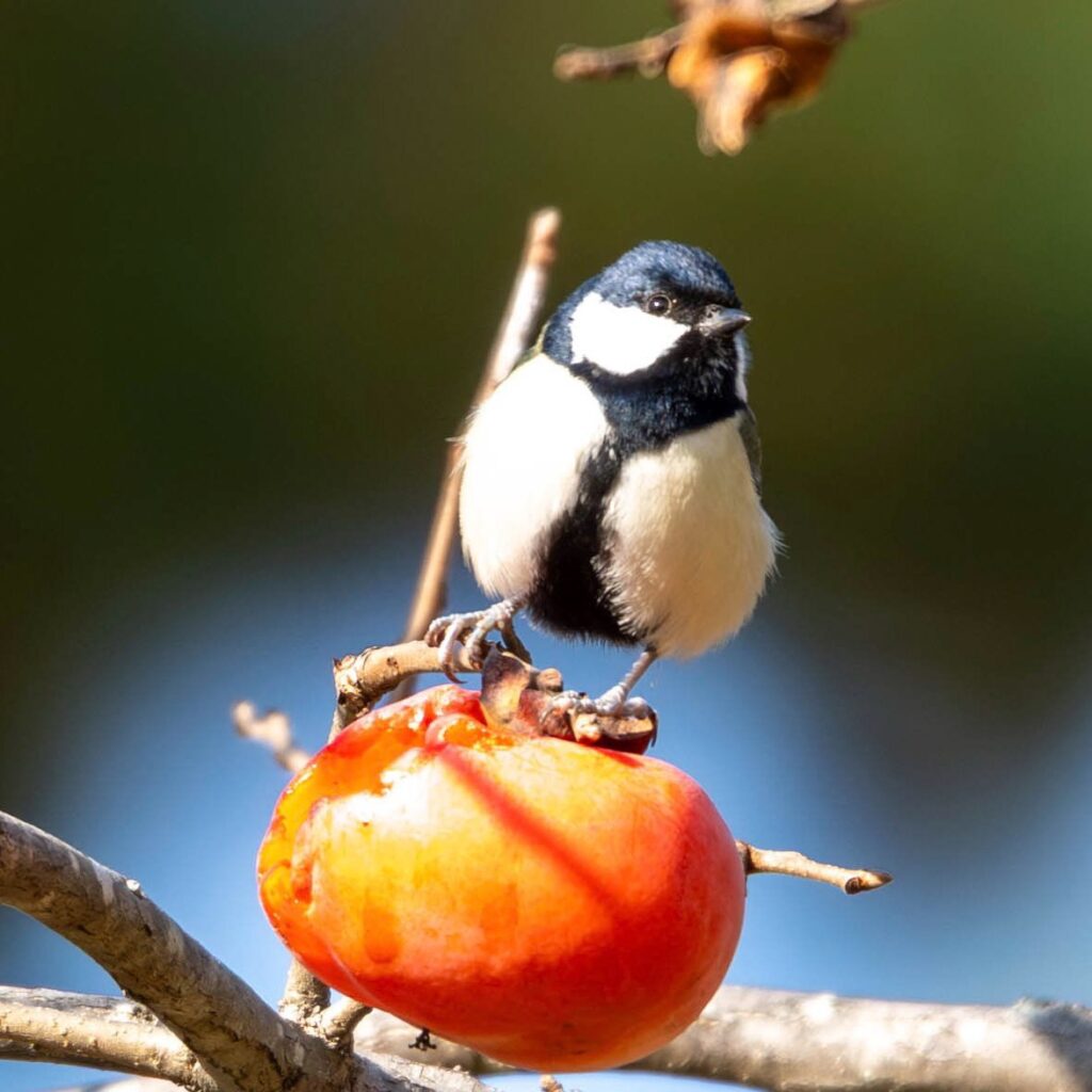 ドーナツ広場と反対側のピクニック広場の柿の木にもカラ隊が次々に登場!まずはメジロちゃん