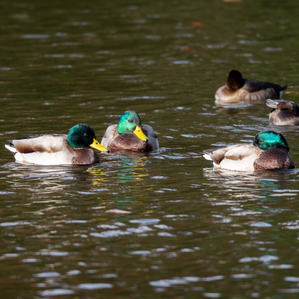 オスが集合!光の当たり方で頭の色が違って見えるのが面白い(๑>◡<๑)