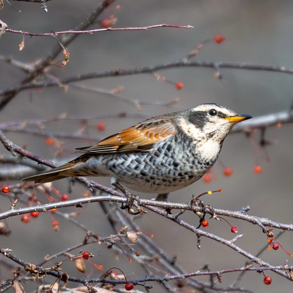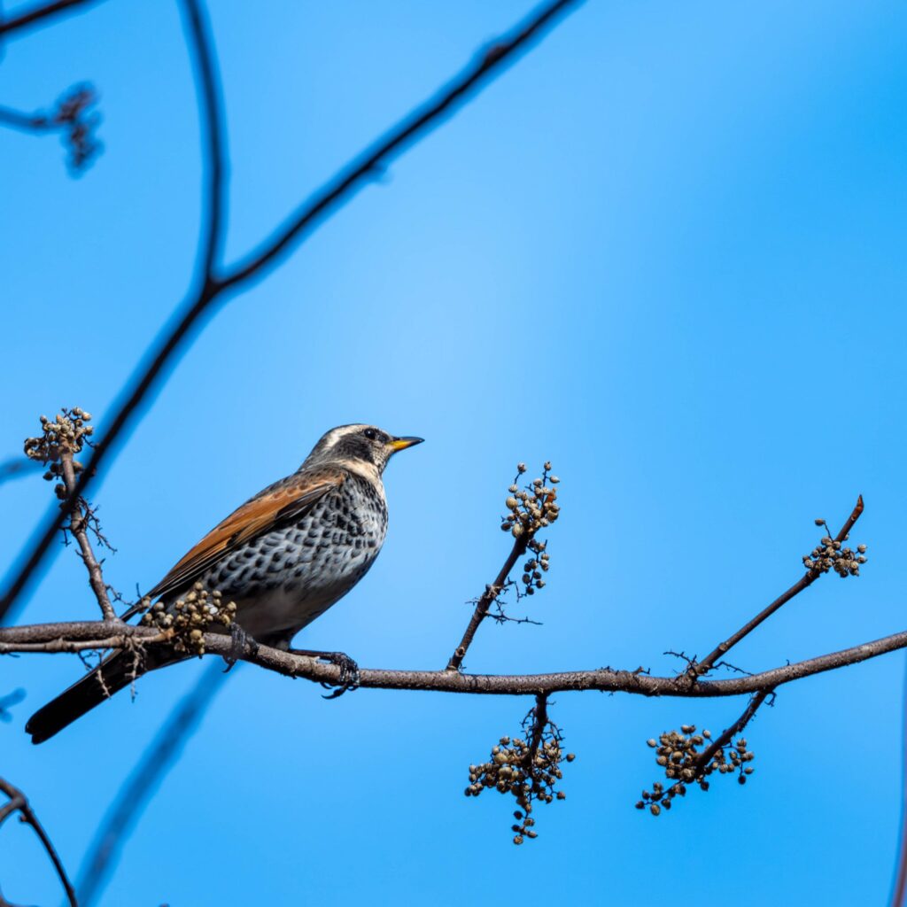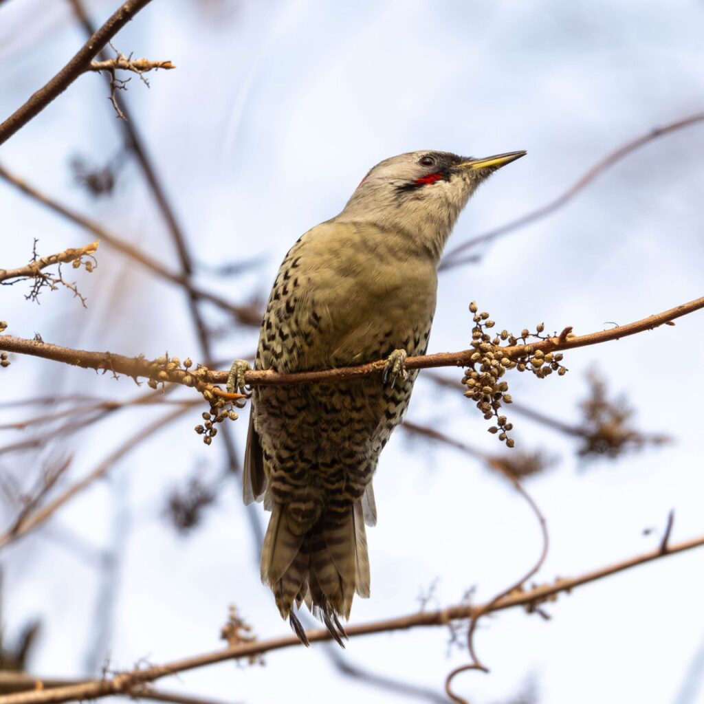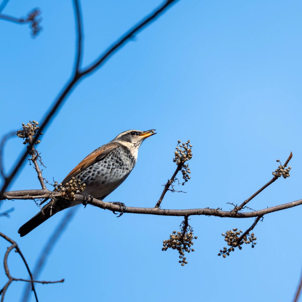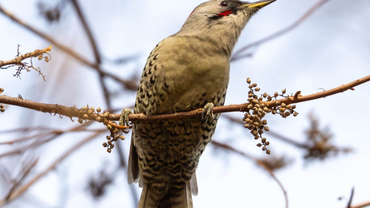 アオゲラちゃん。アオゲラちゃんもカラスザンショウの実を食べてました。