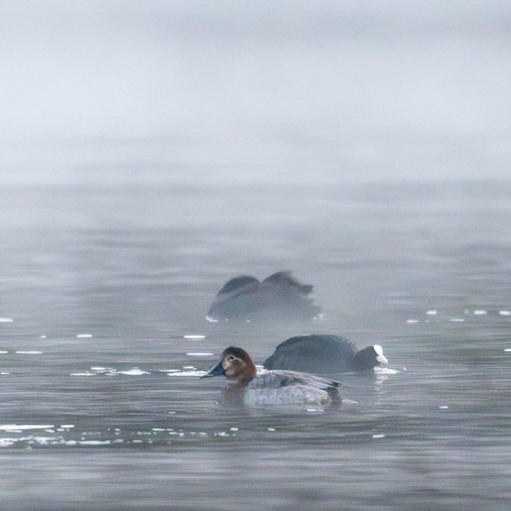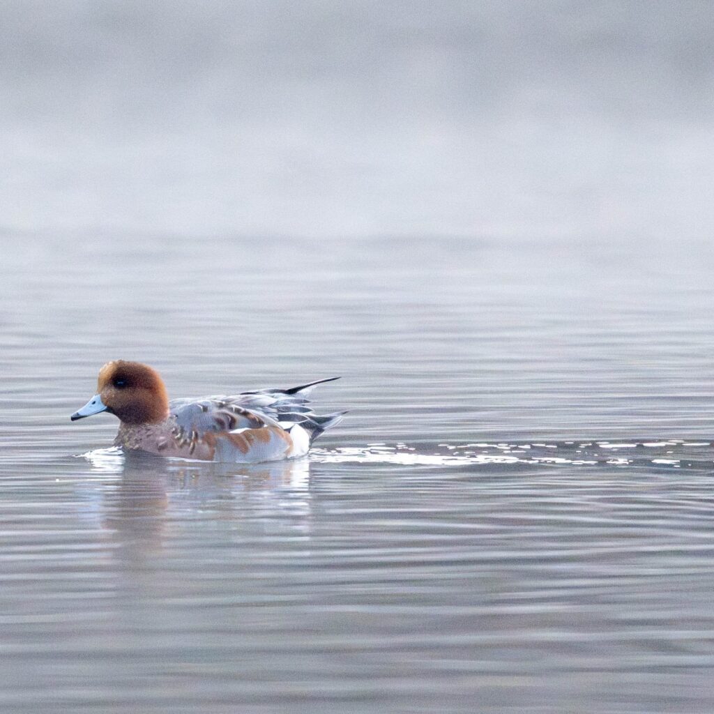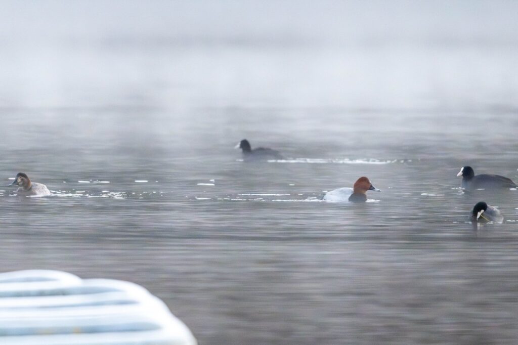 湯ノ湖は靄がかかり、幻想的な雰囲気でした。ヒドリガモちゃん