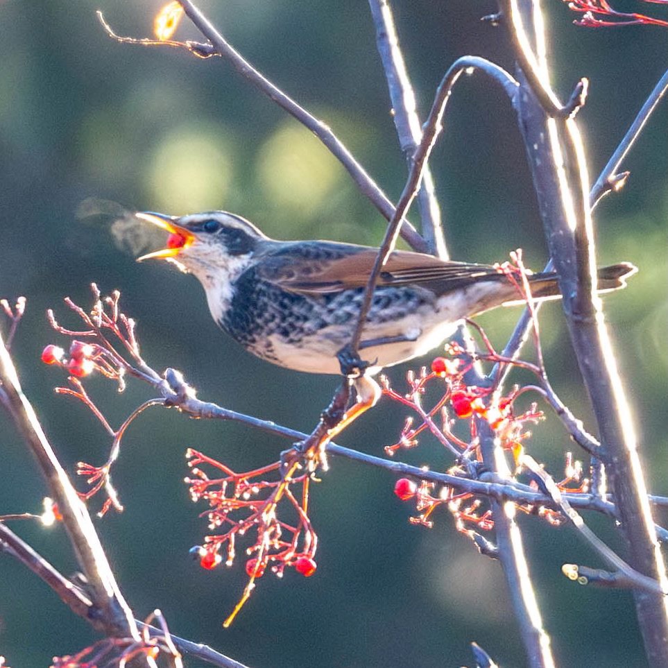 朝食後チェックアウトし、湯滝へ。カラスザンショウの実?を食べるツグミさん
