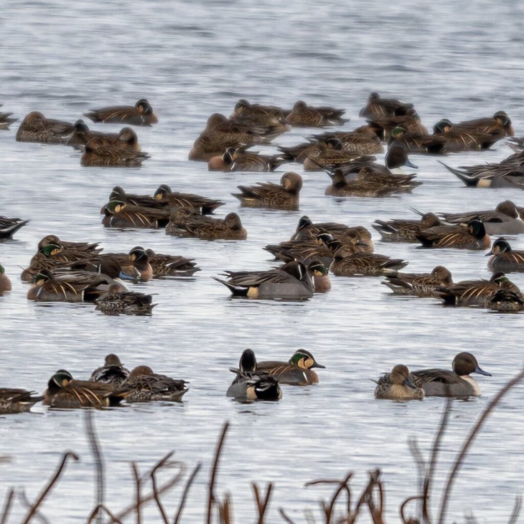 オナガガモちゃんとトモエガモちゃんが入り混じってます