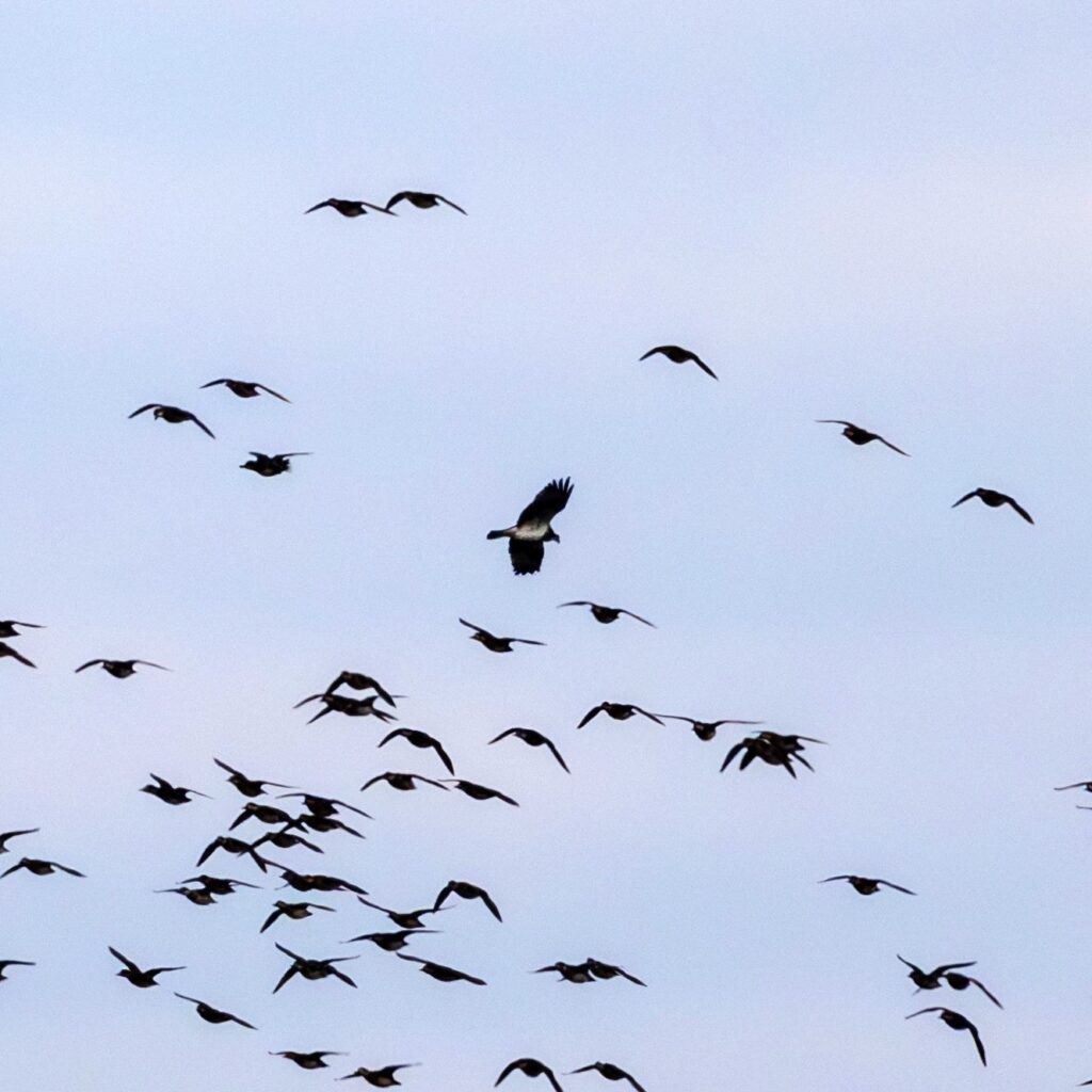 カモちゃん達の群れに猛禽が突っ込んだ‥かな?