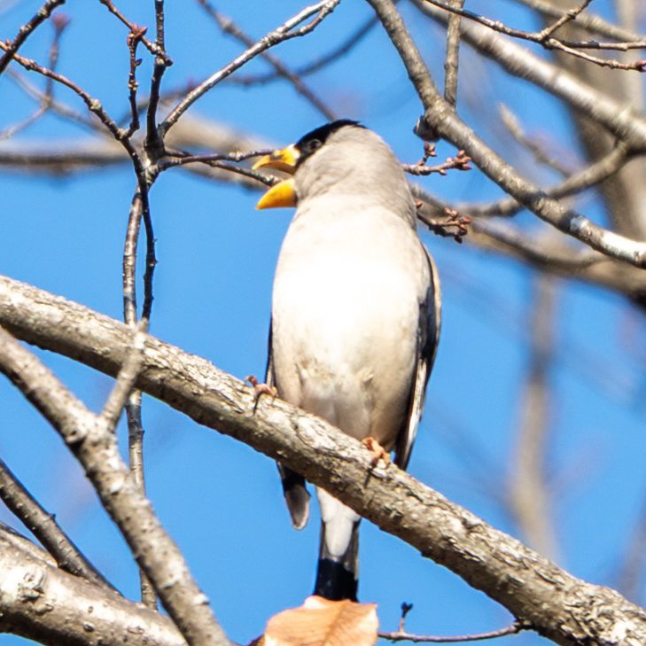 ここでいつもなら、ヒヨドリ沢に向かうところですが、途中の木道がおじいちゃん達で賑わっているので、回避して、早々とヒヨドリ山へ向かいます。途中、出会ったおじ様から、この先にイカルの群れがいるよーと教えてもらい、期待が高まります。程なくしてイカルちゃんの群れに遭遇!