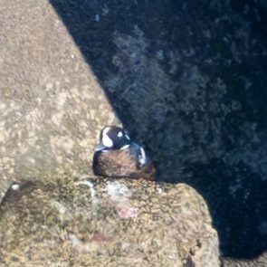 最後に別の海岸へ。画像が粗いですが、遠くの岩の上にシノリガモちゃんがいました