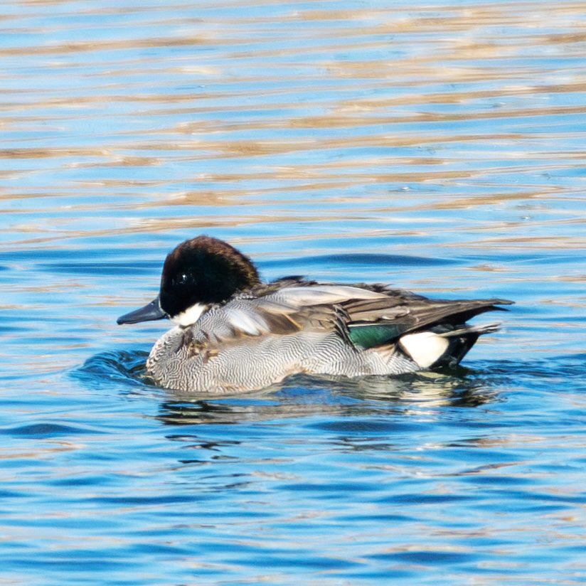 ヒドリガモの群れにヨシガモが混ざっていました。今日は日光の加減で、頭が緑に輝かず残念(T ^ T)