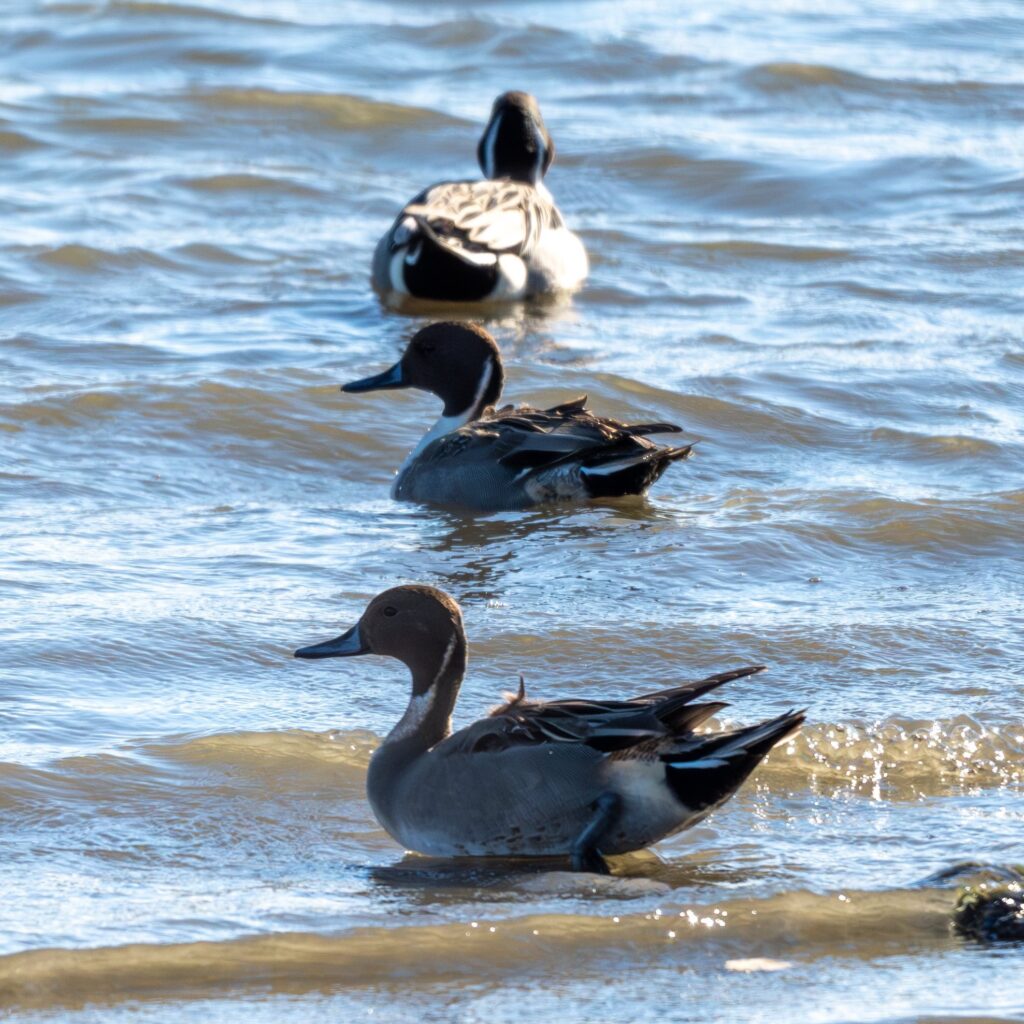 逆光ですが、オナガガモちゃんもいました