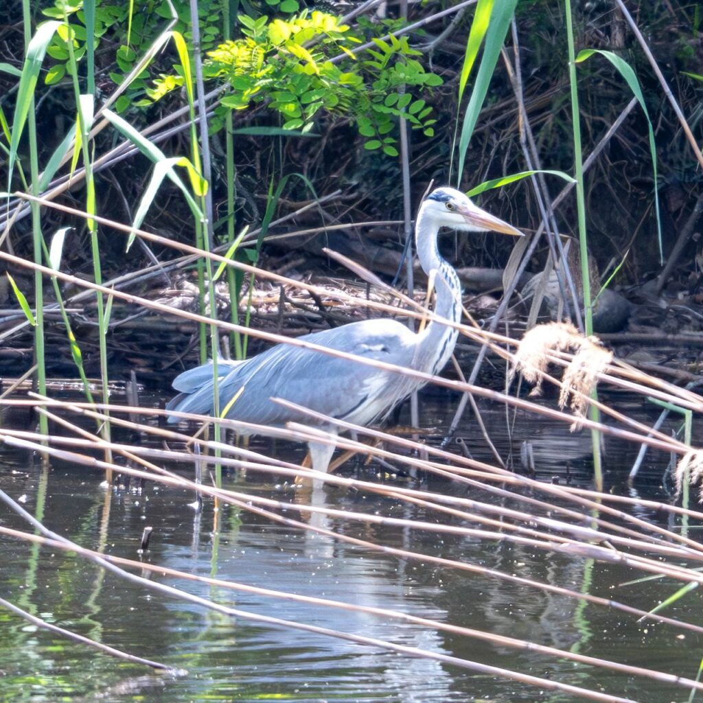 ネイチャーセンターで一休みした後、自然生態園へ行き、3号観察小屋へ。遠くにアオサギさんがいました。