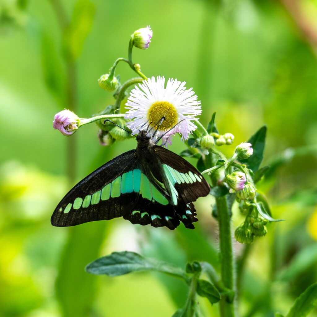 最後にハルジオンに止まるアオジスアゲハちゃんの写真で終わりです(この写真が一番綺麗に撮れた気がする‥)